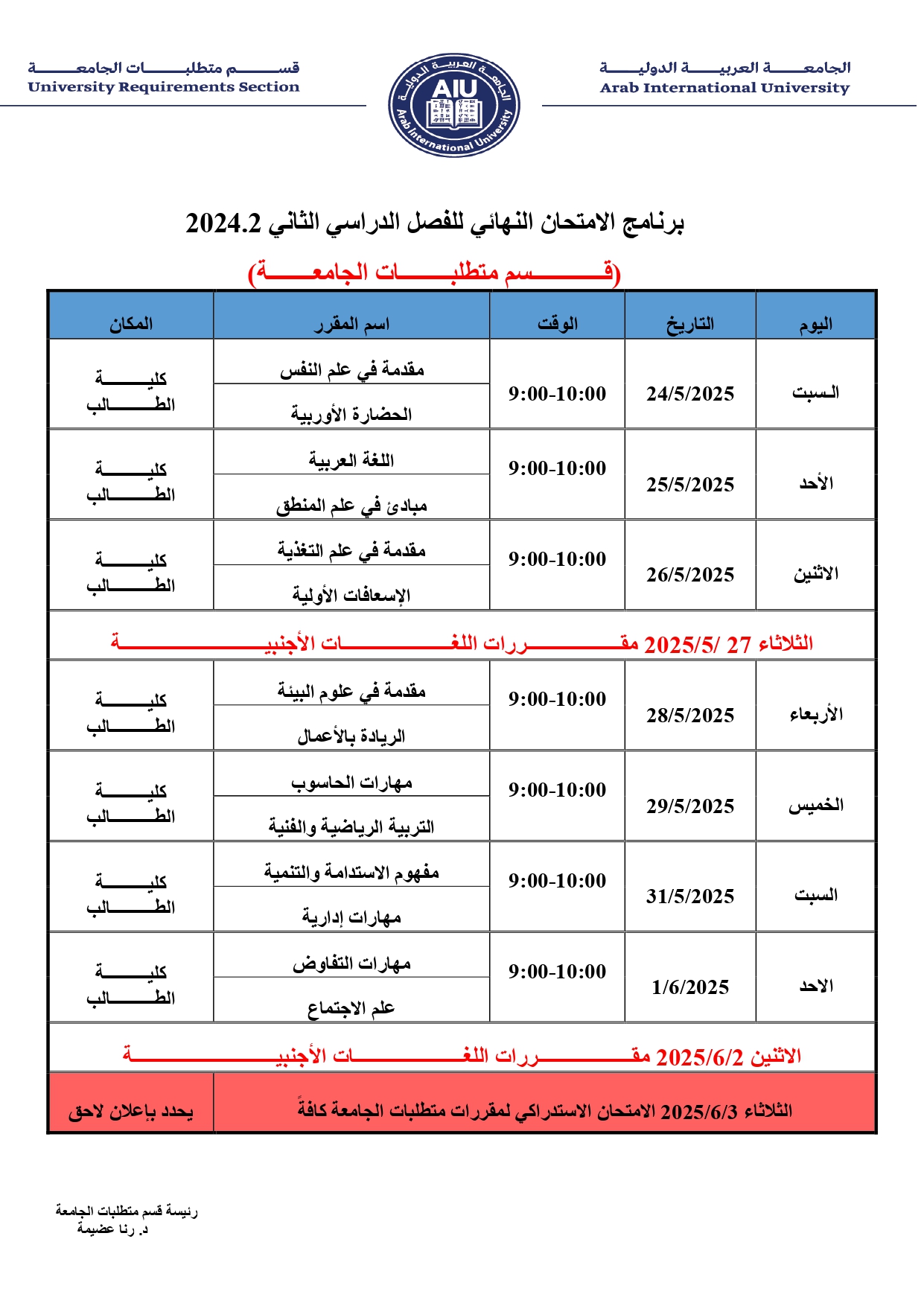 الكليات في الجامعة العربية الدولية