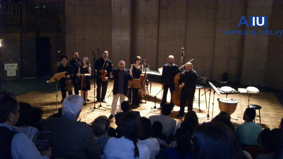 The Arab International University AIU, sponsored two evening concerts for " AIU Baroque Music" in the "Opera House" of the General Authority for Dar Al Assad for Culture and Arts, between 18-19/04/ 2016. The concerts were played by the Damascus musicians and singers band of Baroque music. Some of the professors and students of the Arab International University attended the event.