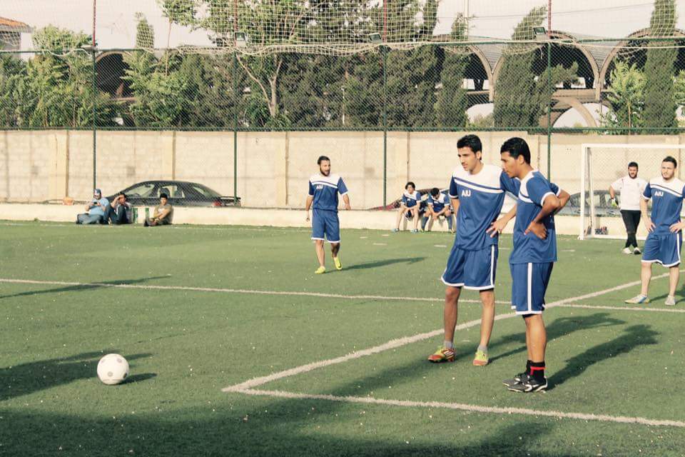 The match between the Faculty of Business Administration Team and the Faculty of Civil Engineering in the University football League Championship resulted in the victory of the College of Business Administration by three goals to one goal on Wednesday 27/4/2016 in the presence of Prof. Dr. Mohammed Fayez Kiwan, vice president for quality and students affairs and Dr. Osman Taha, Director of student Affairs, Dr. Mahmoud Said Dean of the Faculty of civil Engineering and in the presence of the President and members of the Syrian National students Union branch and a number of students within an educational athletic atmosphere.