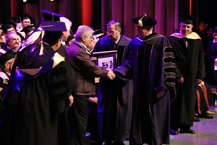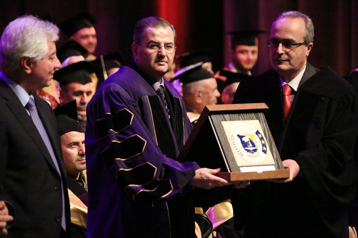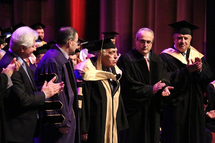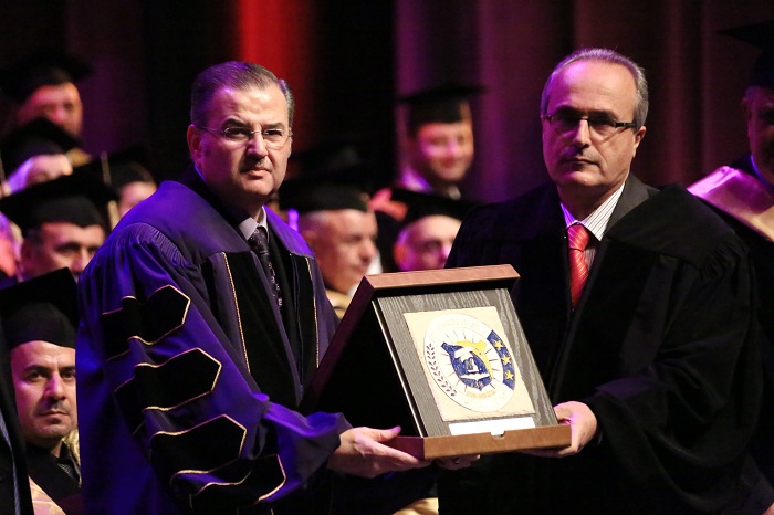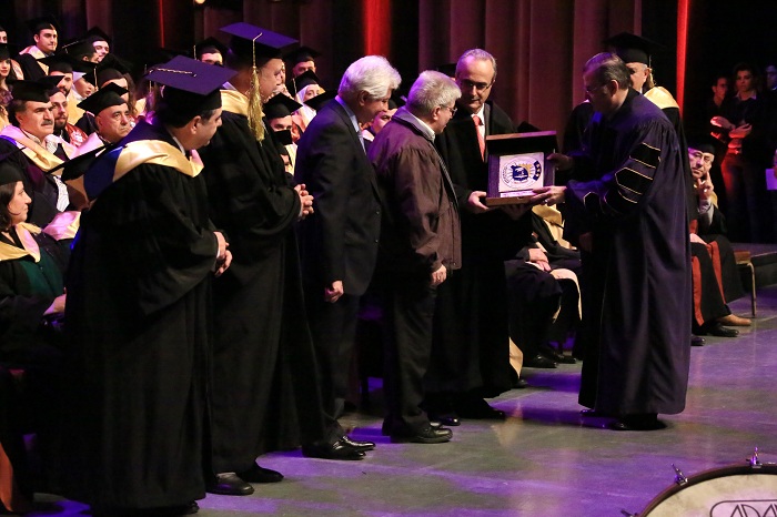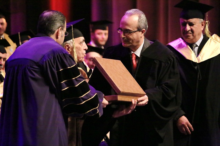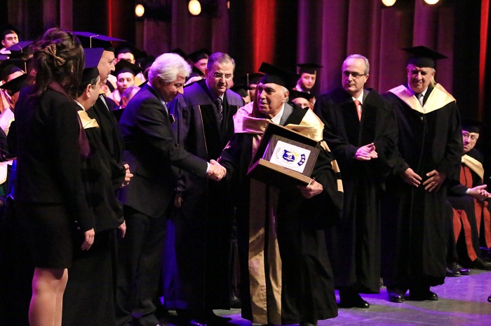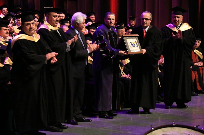 AIU honored at Prof. Dr. Abdullah Wathiq Shahid Graduation Ceremony Prof. Dr. Muhammad al-Emadi Chairman of the Board of Trustees of the University and Professor architect Burhan Tayyara. It handed as well Professor Dr. Peter Mayyaleh, Deputy Minister of Higher Education, the graduation shield and delivered University shield to the son of Prof. Dr. Abdullah Wathiq Shahid