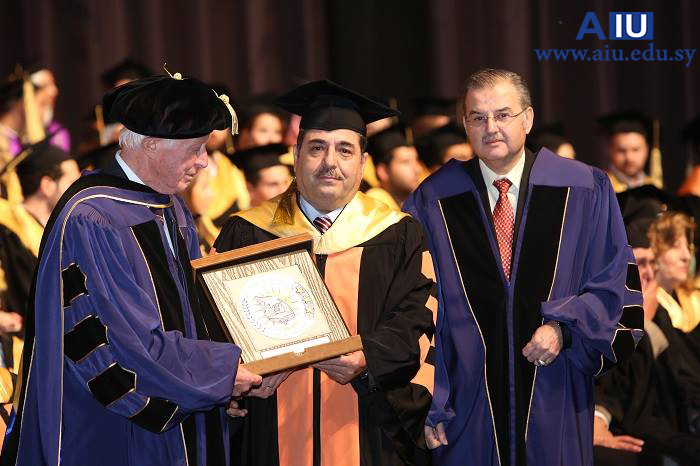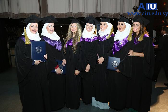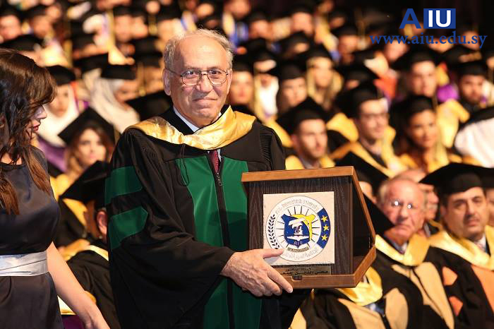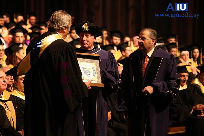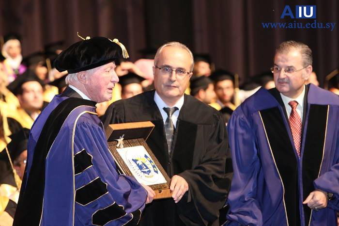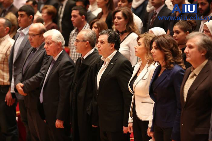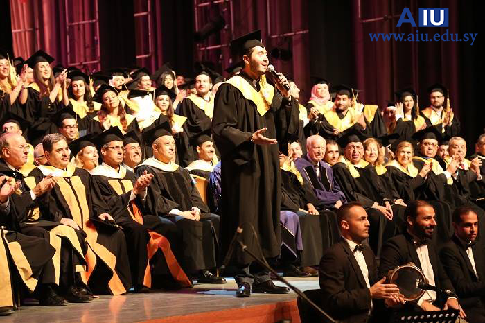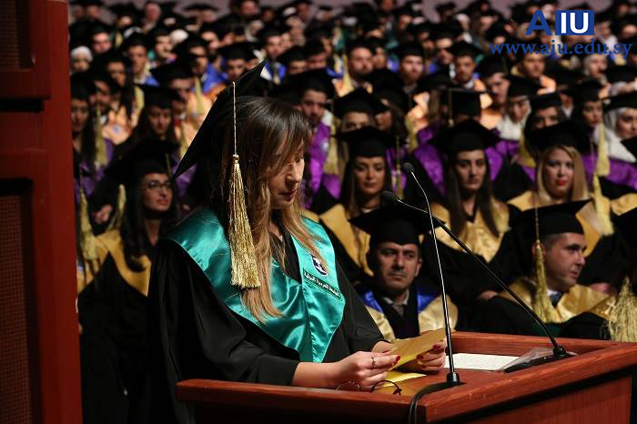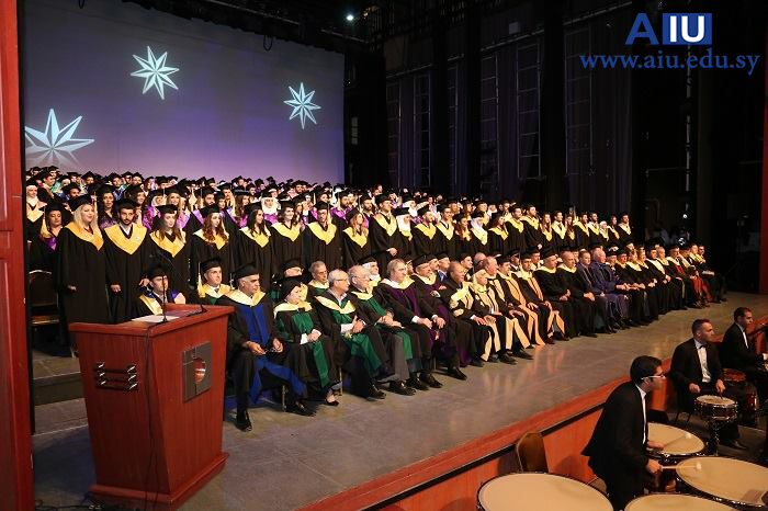 Prof. Dr. Potros Mayaleh, Deputy Minister of Higher Education, representative of the sponsor of the event,Prof. Dr. Mohammed Maher Kabakibi, President of the Arab International University, and deans handed graduation certificates to the graduating students.