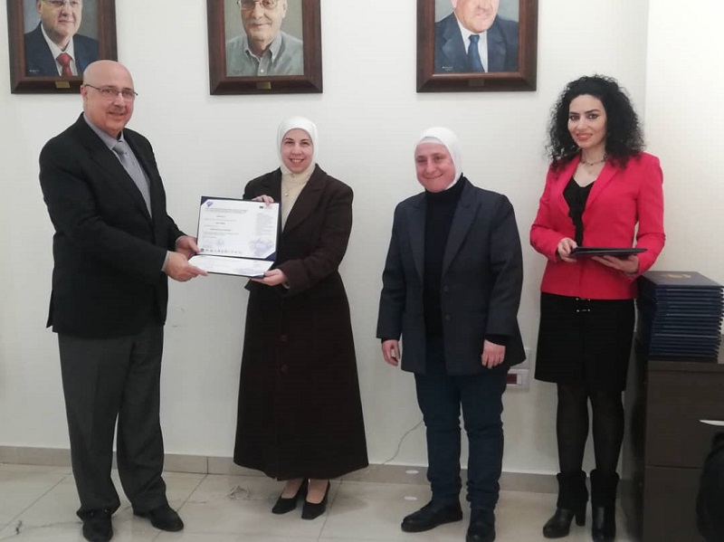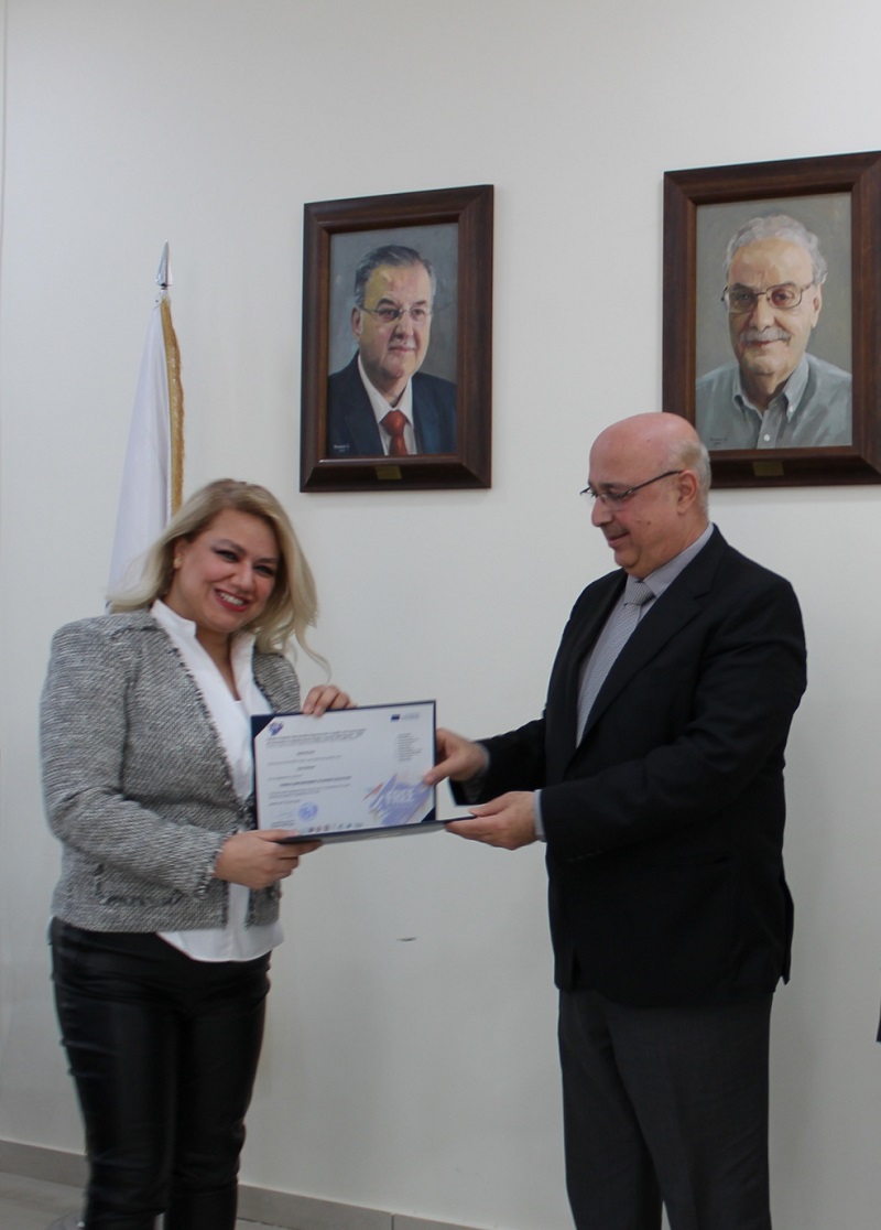 Handing over certificates for project training courses, within the activities of FREE, Empowerment of Female Academics, Equality and Sustainability in the South Mediterranean Region