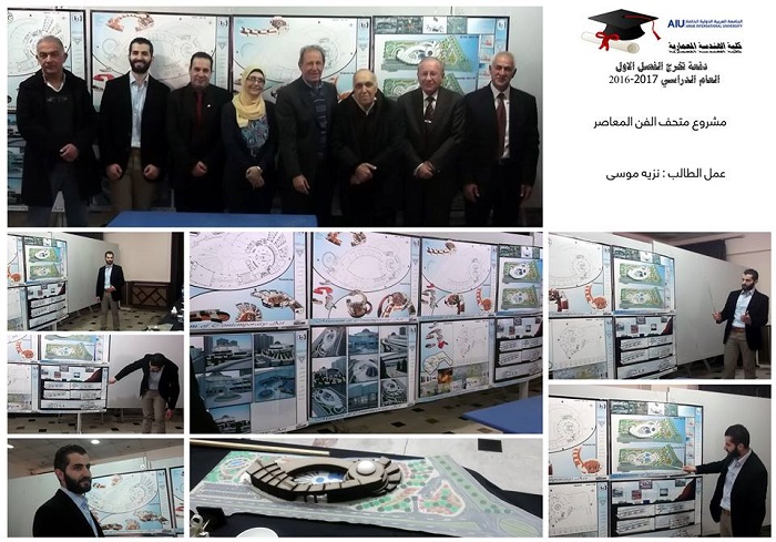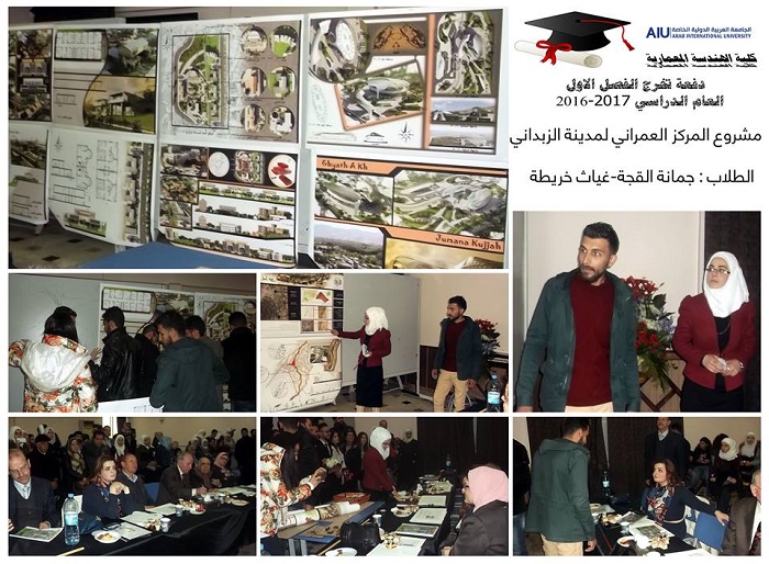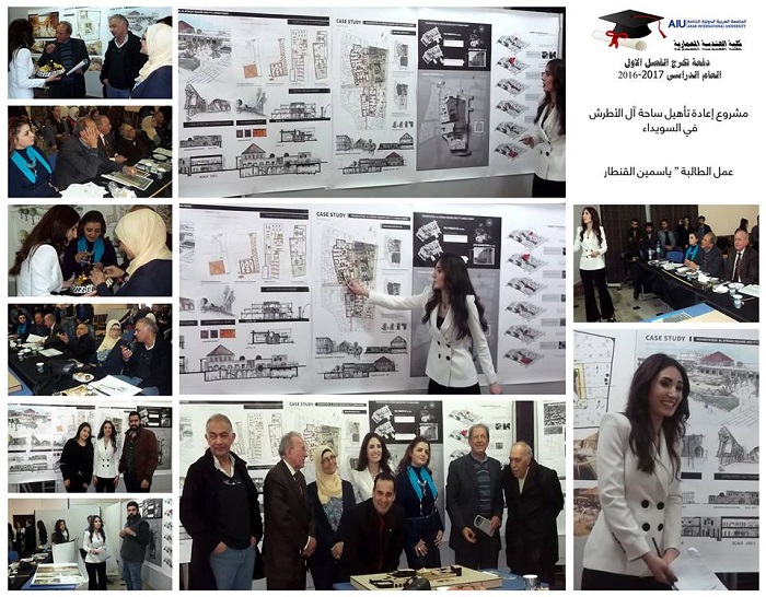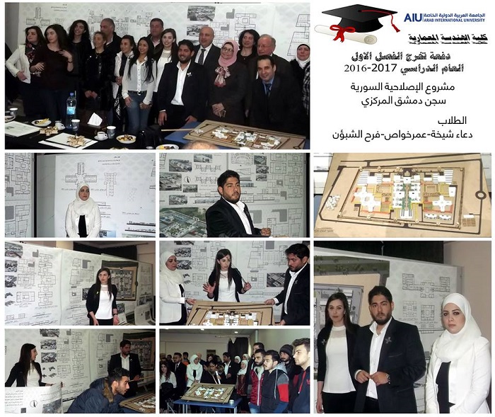Graduation projects for the semester 20161 were defenced for 23 graduating students. 16 projects were implemented with varied topics such as urban planning and architectural design. The projects were characterized by relevance to the heritage such as the rehabilitation project of Alasronah -Almnakhlah and the rehabilitation project Al-Atrash Square in Sweda governate in addition to the project to revive and rehabilitate the theater district and cemetery of Arab Flip in Shahba.Other projects included ruins-related topics such as the Khaled al-Asaad Academy in Palmyra. Two important projects were defenced related to the development of community services after the crisis, such as the Syrian Reformist in Damascus and Psychological Rehabilitation Center for victims of war. The jury, formed by the faculty members at the college, had discussed these projects for two days in a heavey presence of students and their families alumni who had contributed enthusiastically in the arbitration atmosphere.