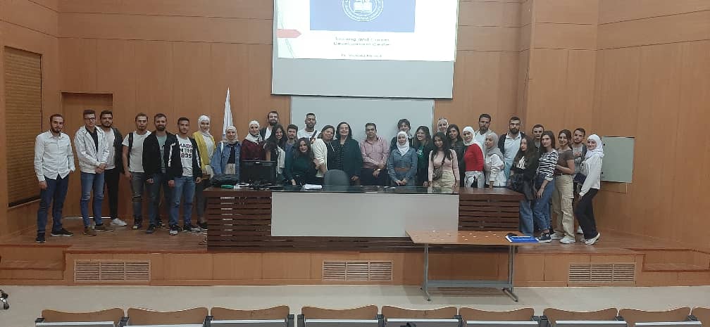 On Tuesday 10/25/2022 at the auditorium of the Faculty of Dentistry, Dr. Victoria Khanouf, the Director of the Training and Professional Development Center at the University, gave an introductory and guiding lecture to the students of the Faculty of Business Administration who are enrolled in the practical training course. In the lecture, the basic steps of the course registration were explained in addition to how to follow up and how to present projects in a distinctive way.