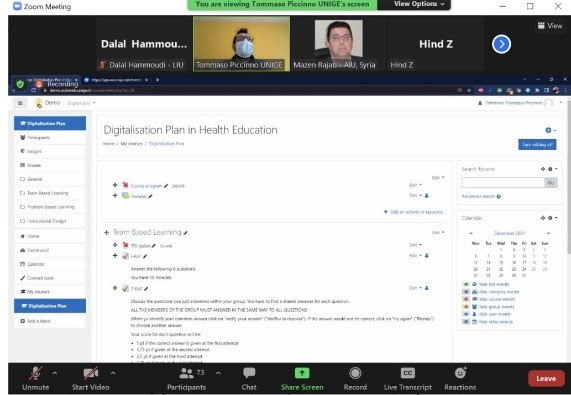 The third training module was from 9 until 23 December 2021. It divided into three topics, aims to prepare participants to plan and conduct some active and interactive teaching strategies. These topics were Problem Based Learning, Team Based Learning and Course design in terms of pedagogical approach. The modules were covered by the experts from University of Genoa-Italy and the coordinator was professor Guido Amoretti. Nineteen participants from the Pharmacy Faculty at AIU joined the training.