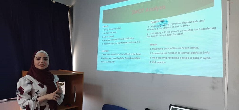A group of business administration students in various majors presented practical training projects for the second semester of 20202, in the presence of professors from the College of Management and stakeholders from the business sector who supervised the training, on 07/03/2021.